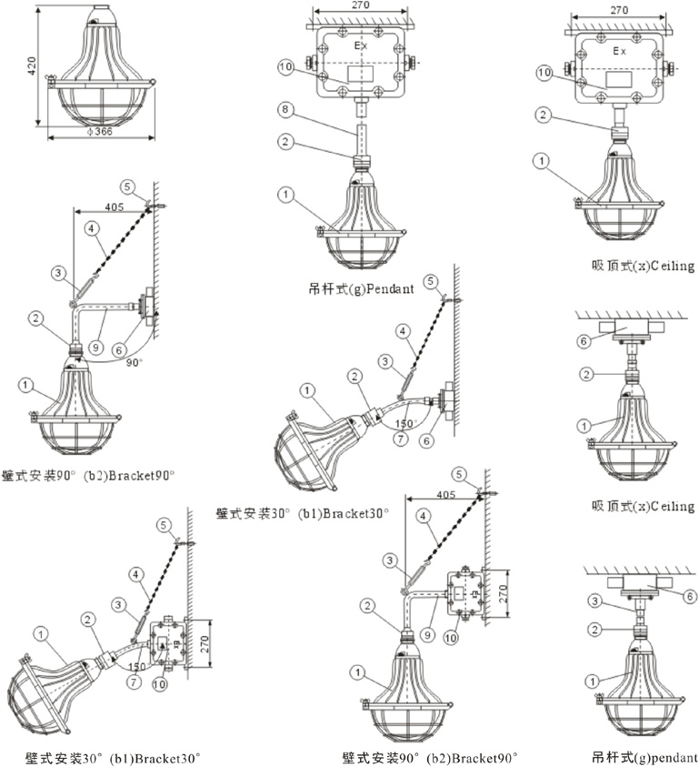 注:所有燈具出廠時(shí)均不配光源,如需要請(qǐng)注明。