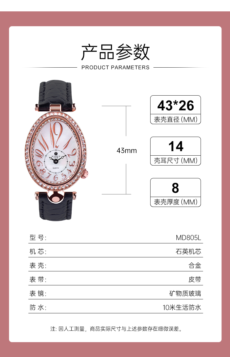美的歐時尚優雅女士石英表MD805L
